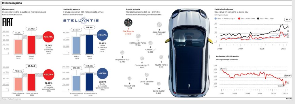 «Leapmotor, il brand attivo in Italia attraverso la joint venture Leapmotor International che fa capo a Stellantis, sta crescendo moltissimo grazie alle tecnologie e all’accessibilità dell’offerta. Alla fine di marzo, Leapmotor ha chiuso il primo trimestre 2026 in testa nel mercato delle elettriche, con un totale di 11.637 immatricolazioni, superando già nei primi tre mesi dell’anno l’intero volume registrato nel 2025 (7.500 unità). Nel mese scorso il risultato più significativo arriva dal mercato elettrico, dove Leapmotor si è confermata leader con una quota del 33,5%, che raggiunge addirittura il 44,6% nel canale privati, assicurando così al brand la prima posizione assoluta nel mercato elettrico italiano».
