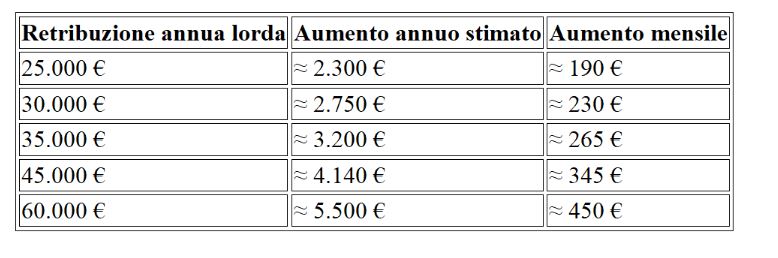 Il vantaggio economico varia in base alla retribuzione annua lorda.