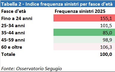 Mentre in termini di fasce demografiche sono i giovani fino a 24 anni ad aver commesso più sinistri (155,1); la fascia d’età con il valore minore dell’indice è quella tra i 35 e i 44 anni (85,0).